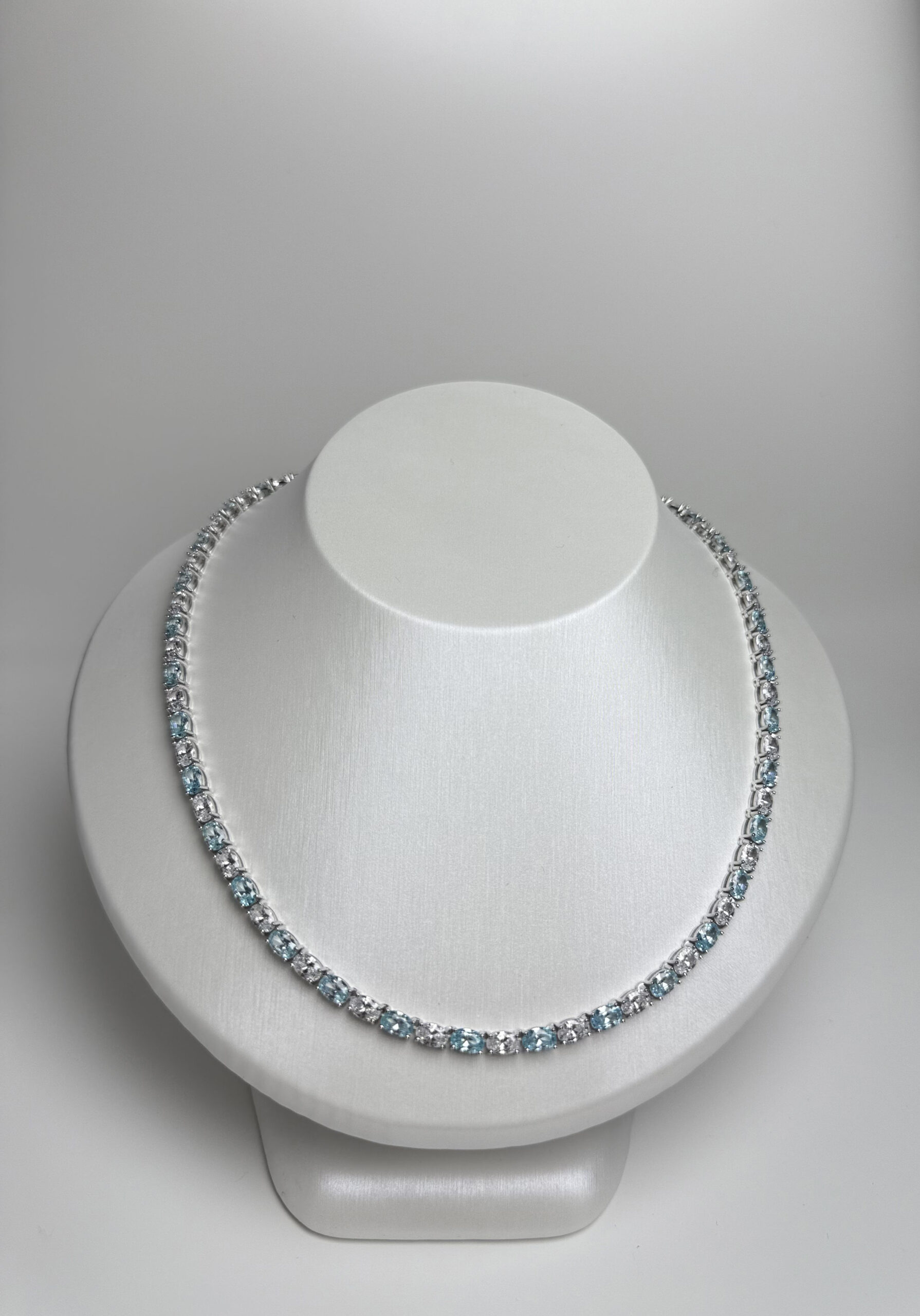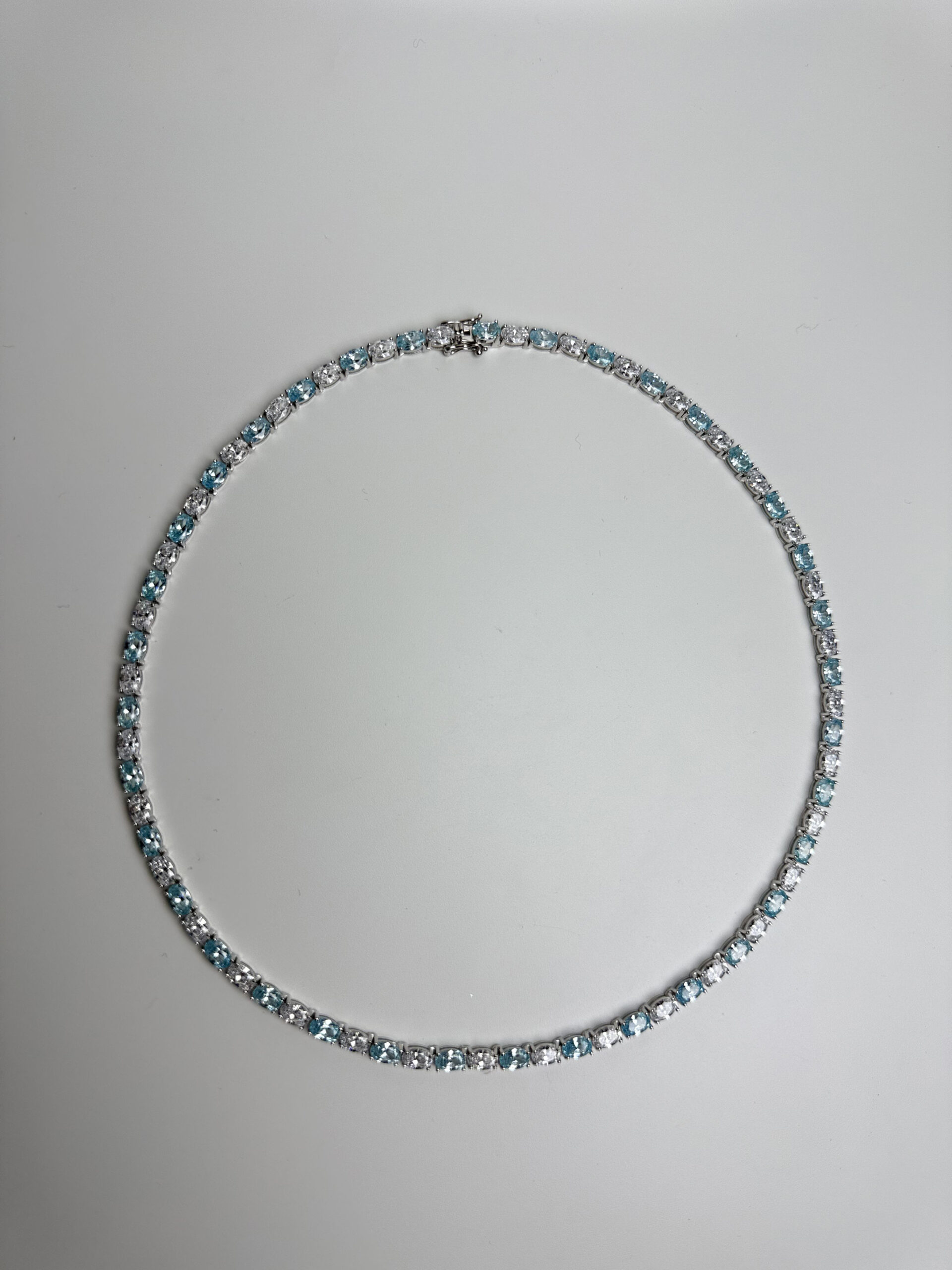 925 Sterling Silver Set With Aqua Blue Oval Cut CZ Gems Tennis Necklace