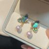 Nature’s Artistry in Every Detail Abalone Butterfly Earrings with Freshwater Pearl Accents